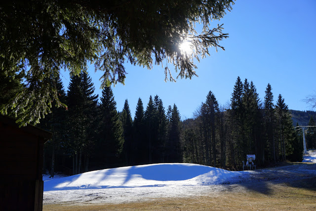 Zaženeva se v strmino proti Lajnarju. Pričeli so z izdelavo snega, pa je premalo mrzlo. Ob ohladitvi naslednji teden bodo pognali, mi pove gospod, ki prihaja po strmini. Ira uživa ko se valja po snegu, teka sem in tja kot že dolgo ne.