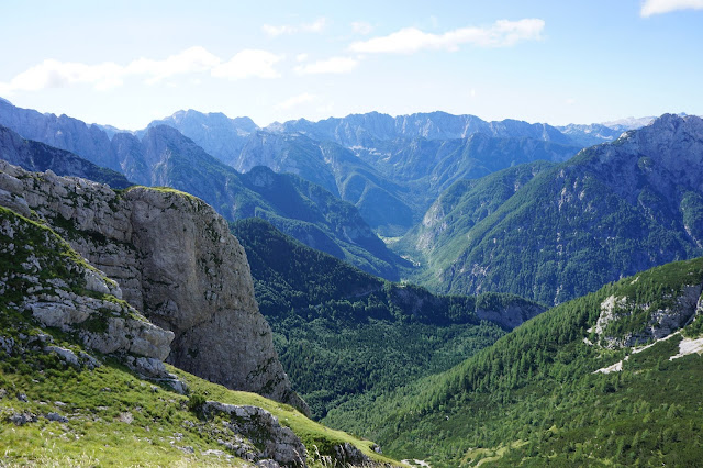 Ostali so že spredaj, zaženejo se v skale mene pa mamijo razgledi. Čudoviti so in povsod se vidi. Jeklenice, klini in stope so v veliko pomoč. Korak mora biti siguren in misli pri skalah, ko prestopaš iz ene strani na drugo, vmes ni vedno varoval.