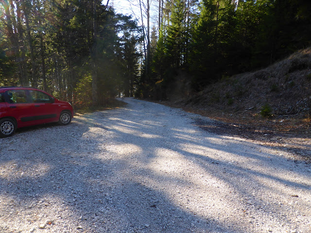 Dan dva, pa se bodo otresle snega. Še dva se vzpenjata s smučkami po cesti. Pri odcepu sem, kmalu bom pri zapornici. Avtomobili so na drugi strani, pa je cesta zelo razdrita.