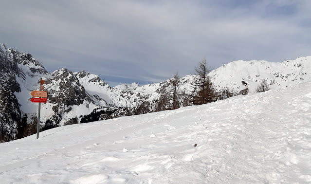 Zima je tukaj v vseh pogledih. Le snega na drevju ni več. Res je pot strma, v kopnem pa je kamnita in lepše se hodi po snegu...Ustavljam se pri hiškah, uživam na polno in nadaljujem proti domu.