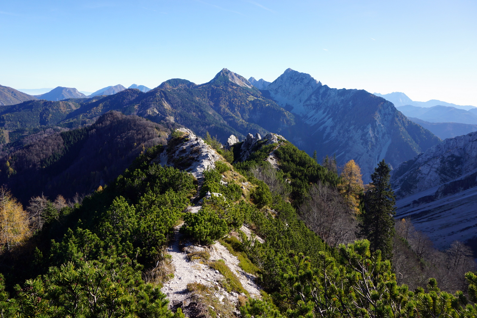 Krasen dan imava. Pomalicava in se spustiva po stezicah. Macesni žarijo v soncu, vrhovi gora so čisto beli, pogledi čudoviti. Se zamislim ob tej lepoti, ki nam je dana. Nehote se pojavi misel, " bom šla še kdaj"?