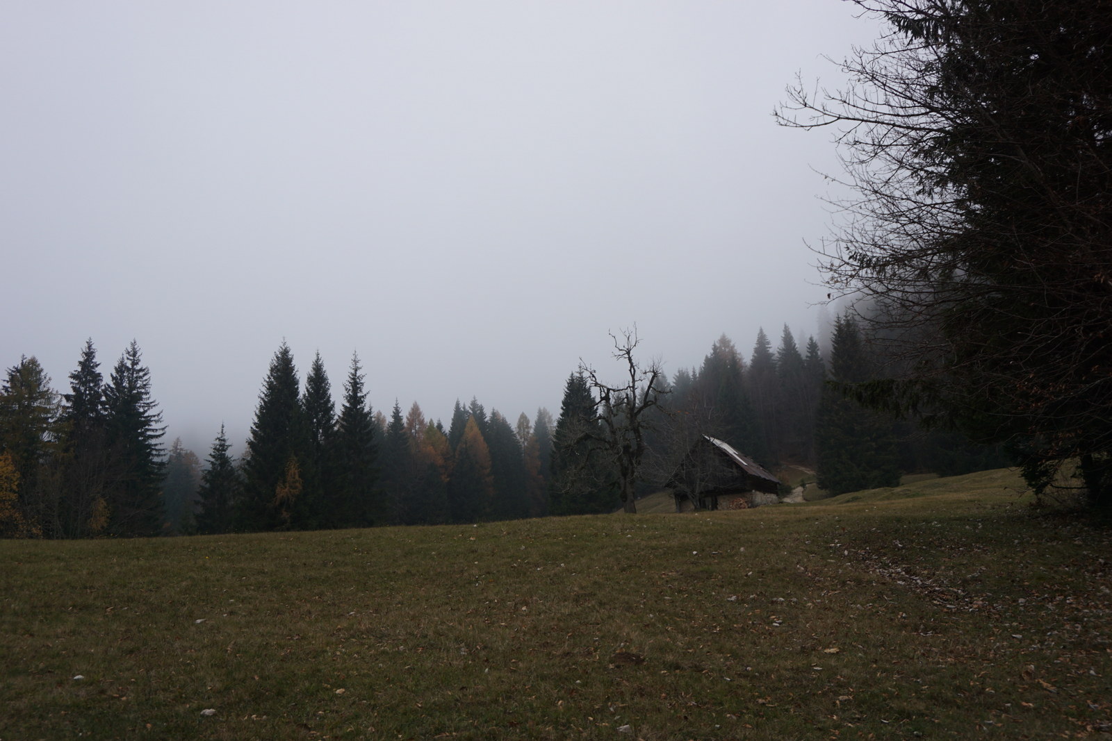 Megleno je na Rogarjevem rovtu. Fotografiram, sama megla. Pa si zamislim pomlad in lepo jutro.