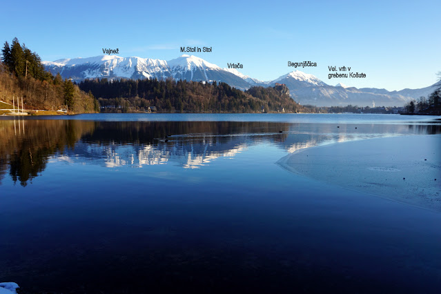 Nadaljujem proti razgledišču Male Osojnice -685 metrov šteje v višino. Razglednik, da zaigra srce in riše nasmeh na obraz. Jezero spodaj, otoček, grad, hribčki okoli Bleda in vasice posejane naokoli, lepo, zelo lepo. Za lepo ozadje pa beli vrhovi Karavank in Kam. Sav. Alp. Sama sem, sprehajam se iz enega konca v drugega in fotkam. Čudovito je. Sonce je naredil razglede še lepše.