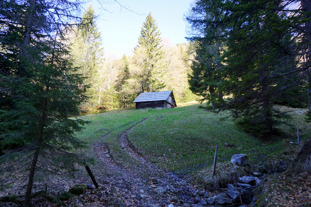 Še malo in pred nama je stari hlev, ki ga vedno poslikam. Vedno je drugačen motiv.