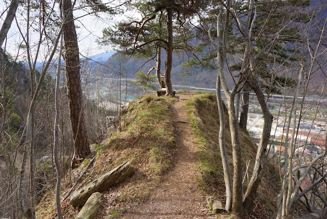 Kmalu sem pri oznakah in Pot po pomolih se spusti na ozko stezico.