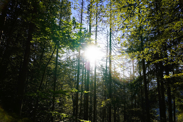 Tam sem že boljše volje. Pokažejo se vrhovi in nadaljujem naprej. Vmes poslikam še kakšno rožico, ki mi prijazno lepša pot. Sonček se vso pot sprehaja z mano in mi nagaja skozi drevje.