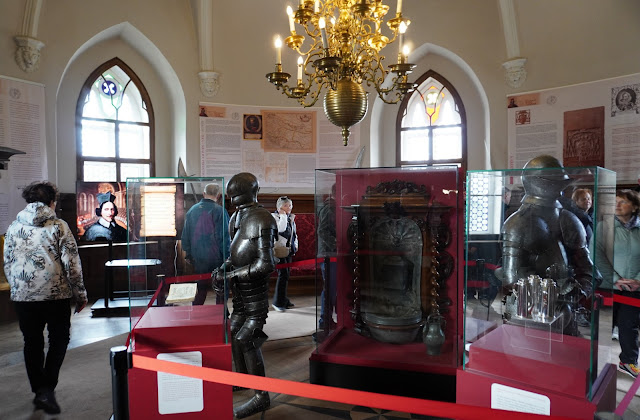 Vitrine so polne orožja in težkih oklepov, ki so jih nosili takratni vojaki.